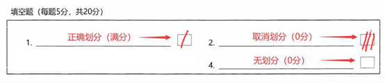 客观题,ABCD答题卡区勿批阅,系统会自动识别判分; 学生纸质答题,老师收集学生登录答题卡后,老师纸质阅卷,在答题卡上,对填空题和解答题型红笔阅卷,在填空题用红笔在勾选[V][X]框画斜线,注意红色斜线勿与底色黑底重合,解答题分数板上,用红笔在分数框画斜线,阅卷完成后,全部放置扫描仪扫描。