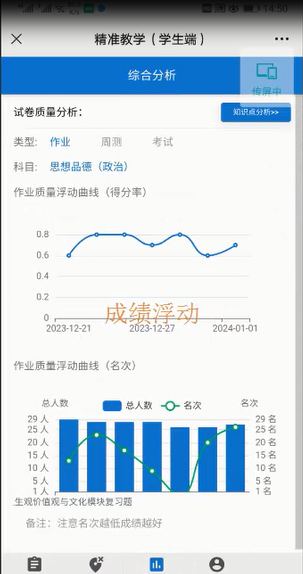 7.3.3.生作业、周测、考试成绩浮动曲线
