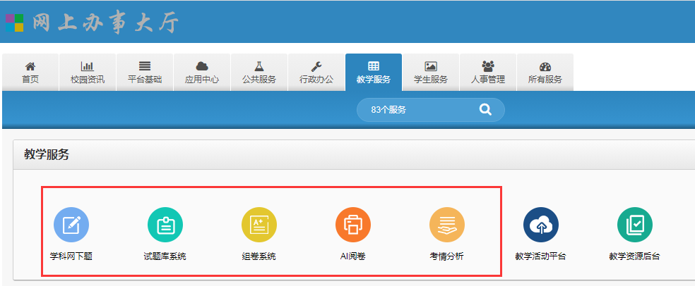 老师通过我公司学科网专用通道,进入学科网下题,题目才能进入校本题库,与老师原来进入学科网试卷word下载试题的方式有区别,进入学校[办事大厅]-->[教务服务]-->[学科网对接]。 或者直接访问http://zxxk.groupoa.net:8092/login/进入下题通道,输入学校代码、账户、密码,注意账户和密码与智慧校园账户密码同。学校代码请与学校系统管理员联系